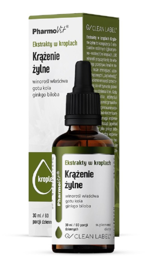 Ekstrakty w kroplach Krążenie żylne to kompozycja 3 ekstraktów roślinnych (glicerynowo - wodnych)w kroplach.