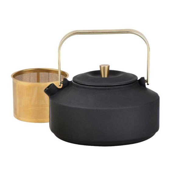 Żeliwny zaparzacz KINGHoff KH‑1935 łączy surową, matową czerń z wyrazistymi, złotymi akcentami, nadając codziennemu parzeniu herbaty elegancką oprawę. Masę żeliwa docenisz za długie utrzymywanie temperatury, a emaliowane wnętrze - za łatwe czyszczenie i neutralny smak naparu.